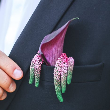 Wedding boutonnieres can be created fast and easy with floral glue and a square of cardboard. If you want more inspiration on how to decorate the card, check out more ideas here.You need the following products and flowers to create this look: