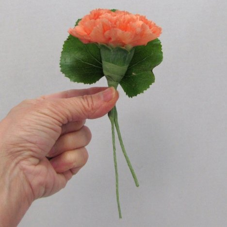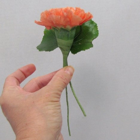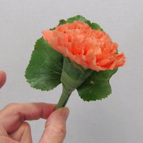Now the leaf stands up with the support and you are ready to back the carnation with it.