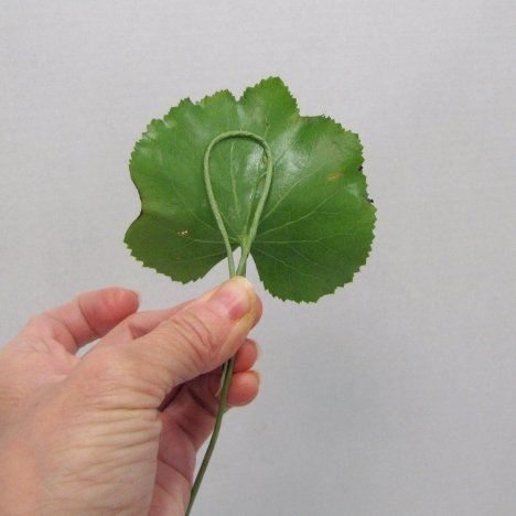 Create a loop and lay it against the back of a galax leaf.