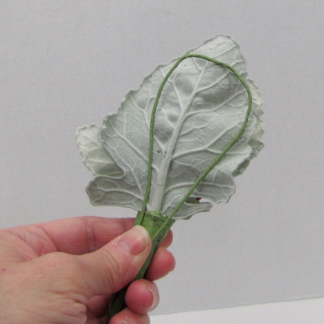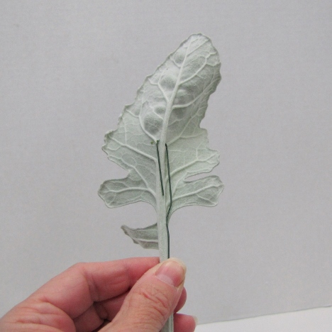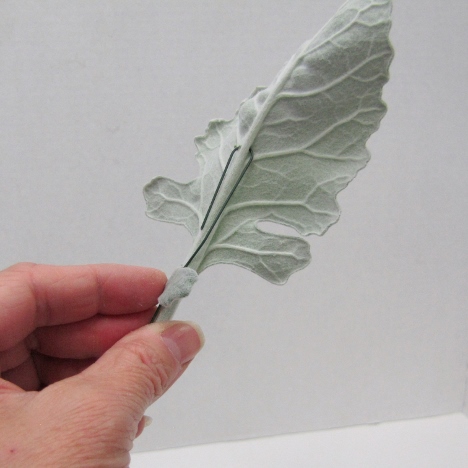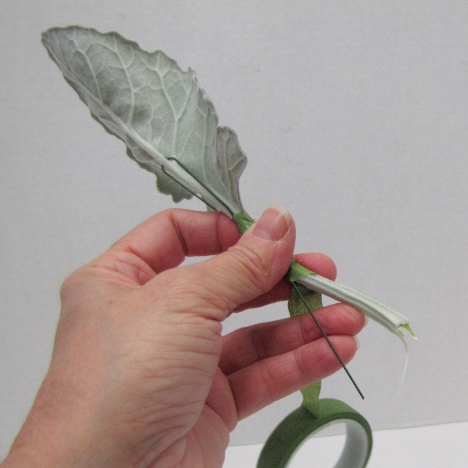 Dusty Miller leaves are softer than other leaf varieties. I need to tape and add extra support of wires so that I can brace the leaves to stand up properly.