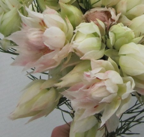 I walked past a bucket of this blushing white protea at the wholesalers and instantly fell in love.