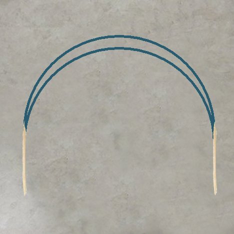 Measure out the size of arch that you want for your topper, then double it over. With white stem wrap tape a wooden toothpick to each end of this rounded arch. These are what you will bury into the top of the cake.