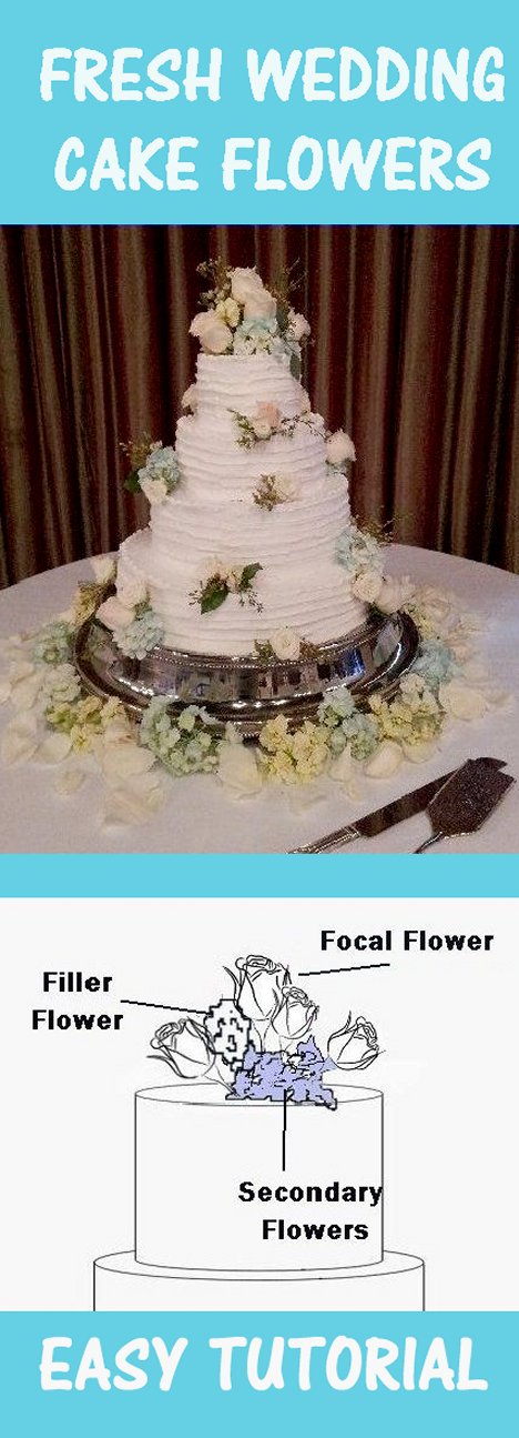 Fresh flowers are a lovely addition to a simple tiered wedding cake. You want to be sure that you use a technique that keeps the flowers food safe so the cake does not become contaminated.