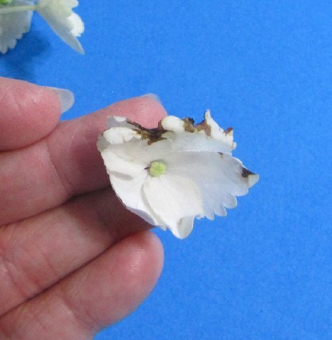 Hydrangeas sometimes develop brown spots during the dry pack process. This is from the flower petals being pressed so tightly together and bruising begins.