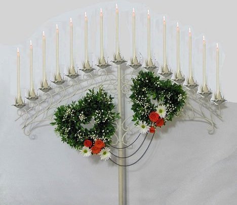 When attaching the church wedding flowers to the candelabra, keep two things in mind. Don't damage the metal and use wire in a way that you can quickly snip and dismantle after ceremony is over.