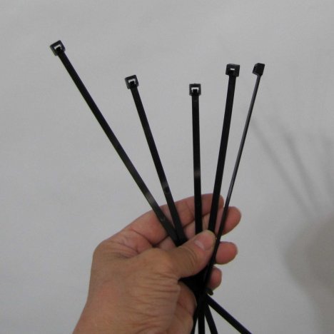 I sometimes use electrical cord ties. These can be found in any hardware store (and in many discount stores like Wal-Mart). They are very strong and hold considerable weight.
