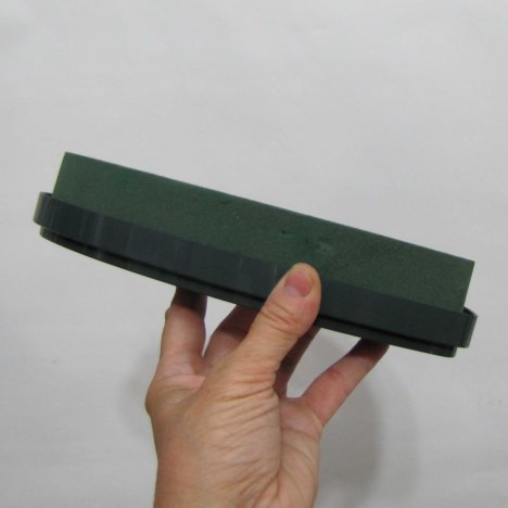 Note the generous depth of the foam, allowing you to insert flowers from the sides so that no mechanics (the plastic tray) will be seen after the design is finished.
