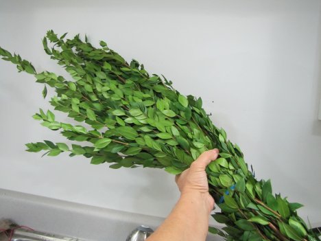 I prefer wedding candelabras to include greenery. I'm going to use one of my favorite types of greenery - myrtle. This is what a grower's bunch looks like.