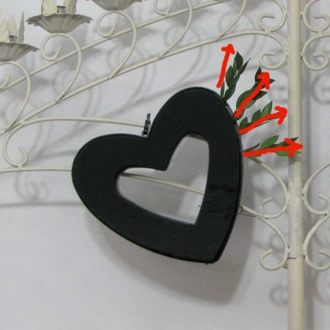 Follow the curve of the heart itself. You can make these wedding candelabra pieces larger by simply making the greenery pieces longer. Just keep in mind that you'll need more greenery.