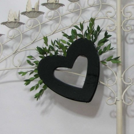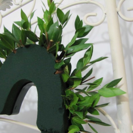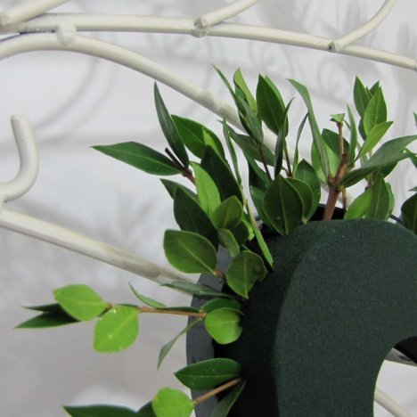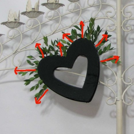 Keep the stems going straight out from the back. As you move forward, filling in the greenery, you can begin to angle the greenery inward, following the curve of the heart.