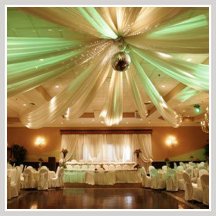 Before ordering wedding ceiling decorations, be sure to read the descriptions carefully. Some may show pictures of an entire ceiling for a very low price, only to discover that the product is only only one panel or a single bolt of fabric.
