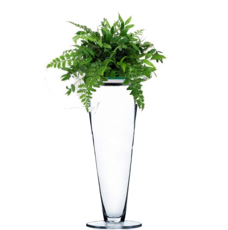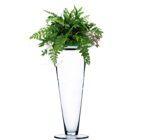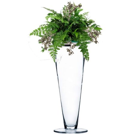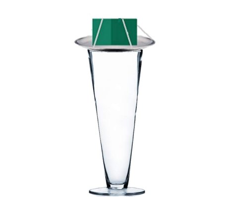 You will be greening and flowering at home. When you arrive to the venue with the flower delivery, rim the top of the vase with white floral tape, rolled very thin. Pick up the finished flower arrangement and place on top of the trumpet vase, pressing down firmly.