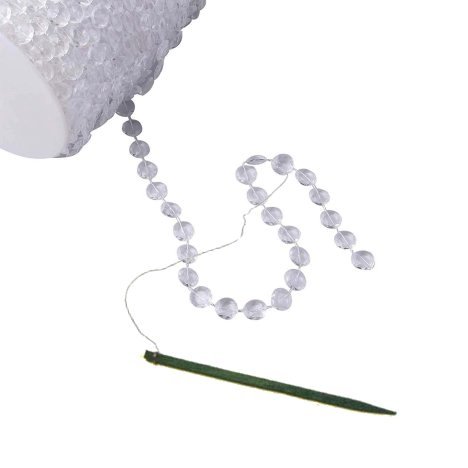 Finish up with a touch of bling. In this design, it's strung pearls looped around the centerpiece vases. Don't use beads that spill out when cut, but rather those permanently strung on a line or filament. You'll need wooden picks to attach to the end of the pearls, wrapping them tightly to the wooden pick with the attached wire.