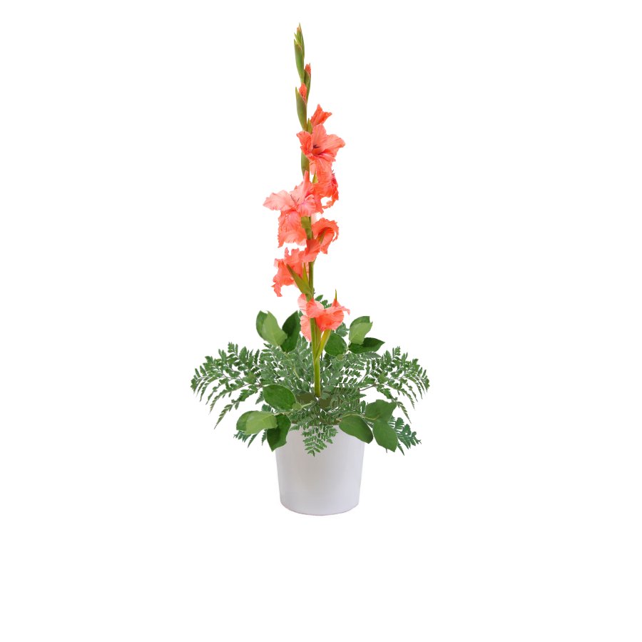 Don't forget the center, but these can be filled in with shorter laterals. Gladiolus have large stems, so you don't want the greens too thick, as there has to be room in the foam for the flower stems.