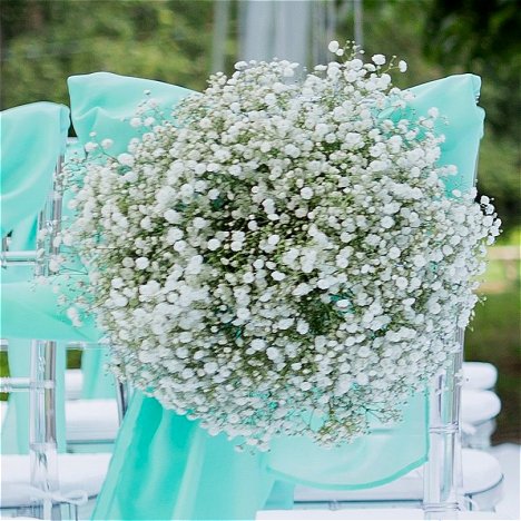 Wedding chair decorations made up of baby's breath are beautiful to decorate the ceremony aisle.