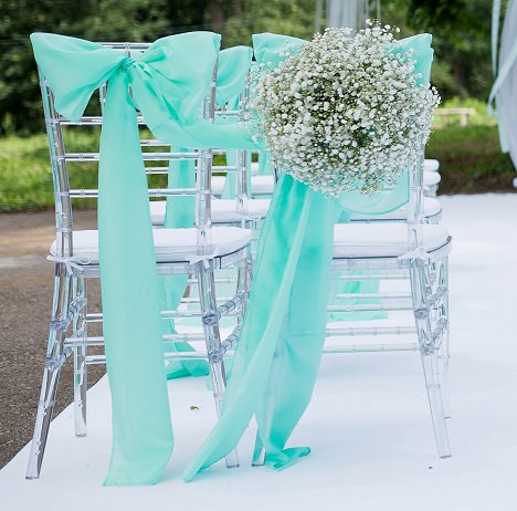 Keep filling in until you have the final look you desire. I suggest you consider needing one full bunch for each wedding chair decoration.