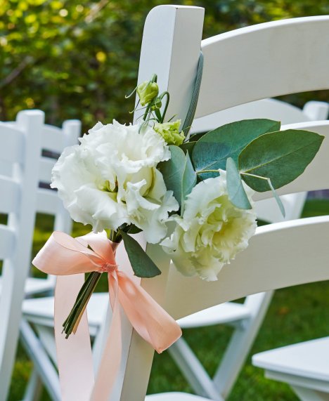 These wedding chair decorations are lovely attached to chairs as aisle decorations. You will need the following supplies: