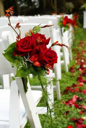 Keep in mind during the insertion of the rose heads that the faces will be seen while hanging from the sides of the wedding chairs.