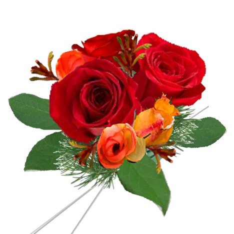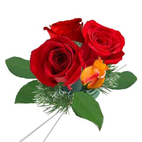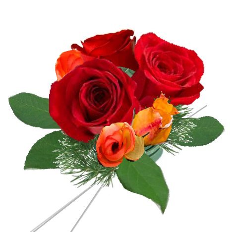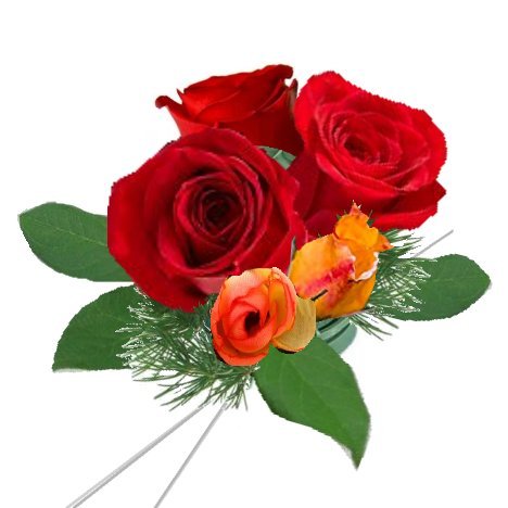 Tuck in the yellow buds around from all sides, filling in the holes between the ming and the largest red roses.