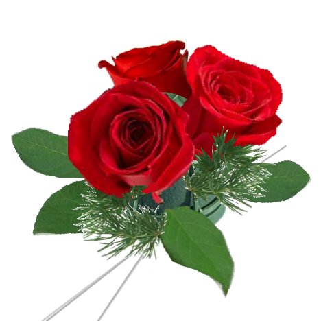 This wedding chair decoration is now going to begin with bright red roses. Cut the rose stems about 2 1/2" to 3" long.
