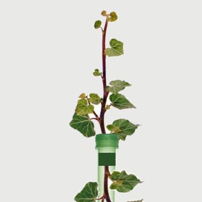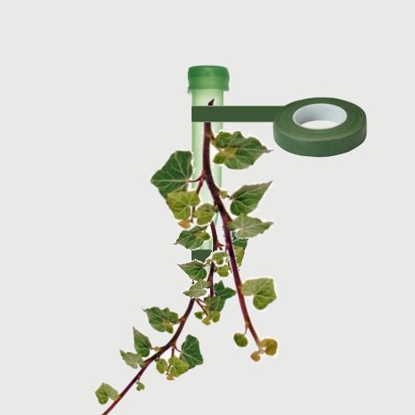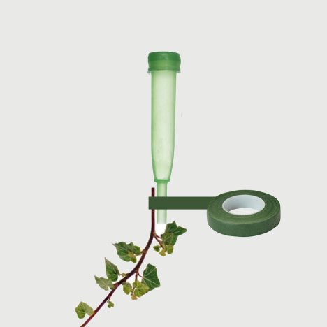 Lay one end of ivy against bottom of water tube and tape into place with the green stem wrap.