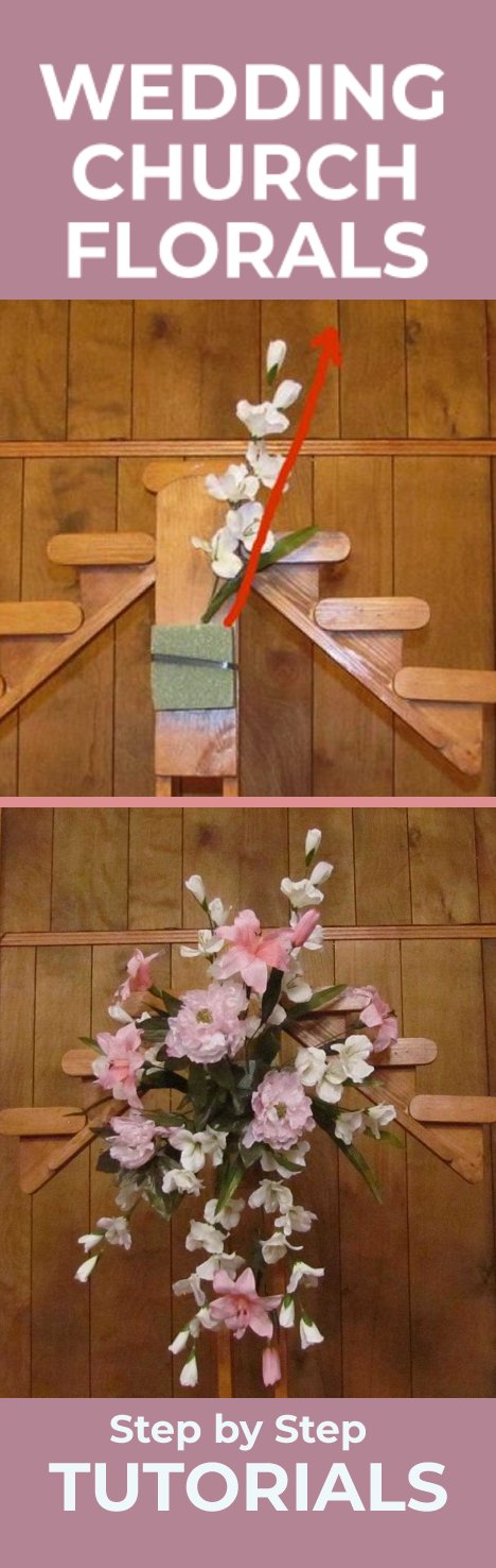 Wedding church designs have to be large enough to create a beautiful backdrop for your wedding vows. Although this design was made in silk, you can easily re-create the same design with fresh flowers.