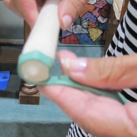 The taper candles were loose in the candelabra fitting, so I quickly wrapped floral clay around the base of the candle . . .