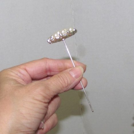 These pins are manufactured by Smithers-Oasis and have a long aluminum stem that is easily cut to the desired length with wire cutters. You can also use paddle wire to attach to a sentimental brooch from your family heirlooms.