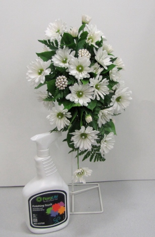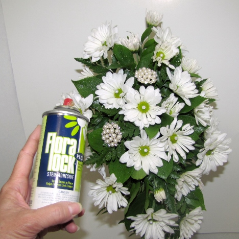 The final step is always to spray all your finished fresh flower designs with a flower sealant such as Finishing Touch. This seals the blooms and slows evaporation from flower petals.