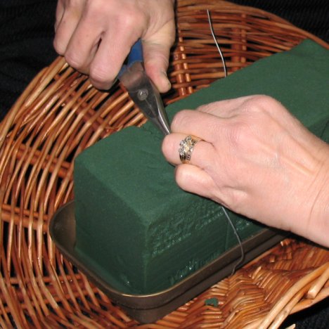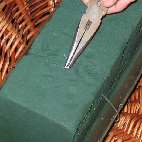 Do the same with the second set of wires on the opposite end of the brick of Oasis foam.