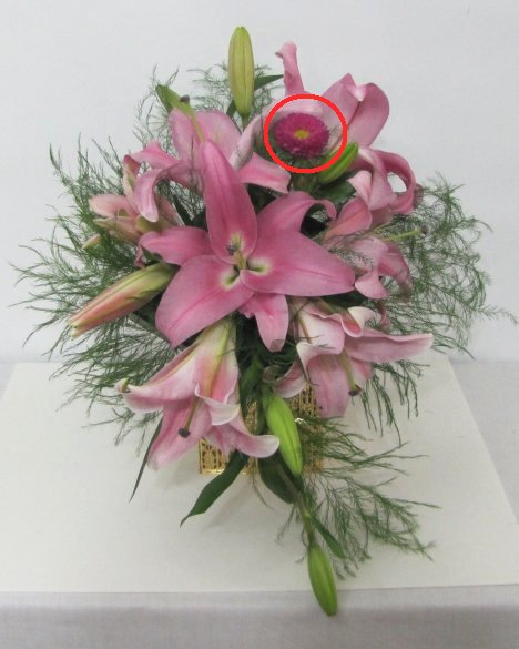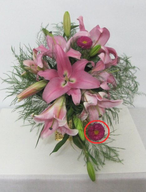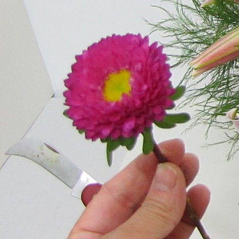 Insert the aster in between the other flower heads.