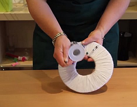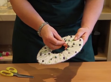This designer had fun adding a contrasting color. She chose lovely apple green to give a good color contrast against the pink of the flowers she uses in the bouquet later.