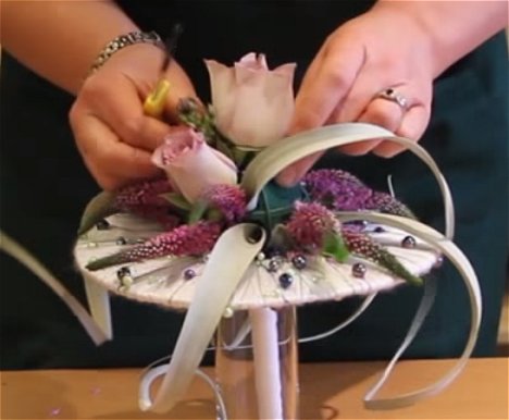 Now it becomes a matter of filling in with the remaining flowers. Remember to cluster some in groups if you wish to retain the "English Garden" feel to the bouquet.