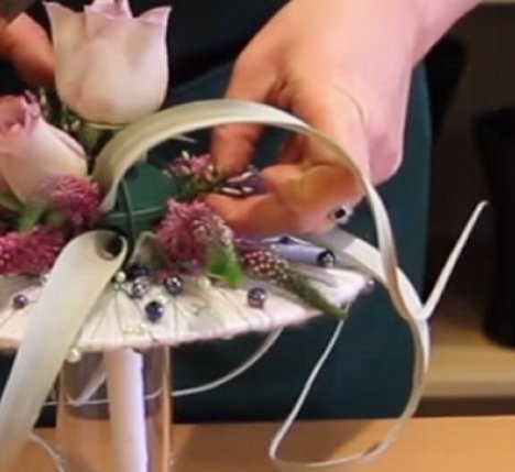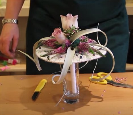 The flowers in the center should stand straight up, then begin angling the flowers outward until those touching the collar are at a complete 90 degree angle to the center rose.