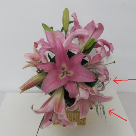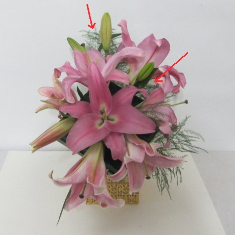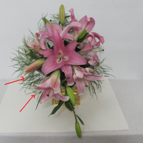 You can see between the blooms right now. It only takes a few sprigs of greens to fill in a little and conceal that.