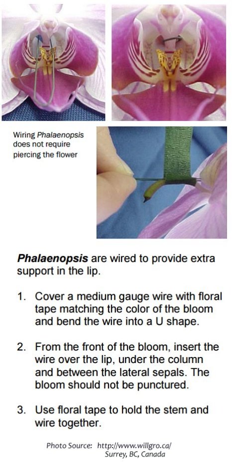 Each bloom has to be wired individually since they are cut from a clustered stem and have very short laterals from each bloom.