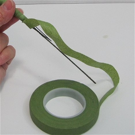 Taping the wire with floral tape gives it a "stem"' to use to insert into the bouquet holder.