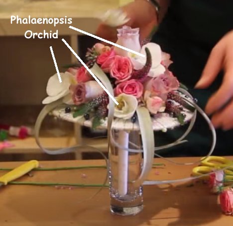 The designer added the Phalaenopsis (often referred to as "Butterfly Orchids) last.