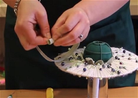 Fold the two sides together and carefully tape down, creating a "stem" to insert into the bouquet holder foam.
