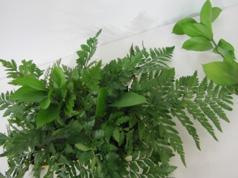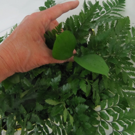 Even just a few pieces give a nice contrasting look to the leather leaf fern.