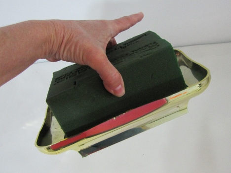 Smooth bottomed bowls will need the extra security of greening tape crossed across the top of the wet foam to secure it into place.