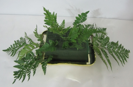 Note how quickly the leather leaf begins to fill out as inserted into the florist foam.