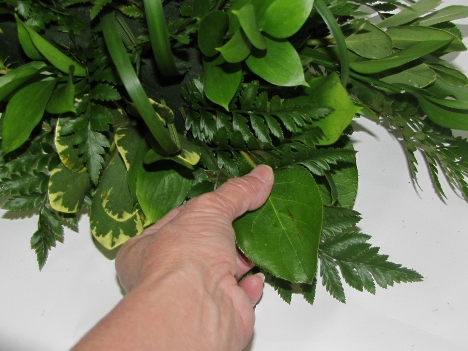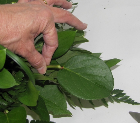 The stems have to be long enough to insert on both sides, yet not cover up the leather leaf fern