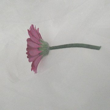 Here I insert the daisy into the side of the foam, with the full face of the bloom facing outwards to the side - not up and flat.