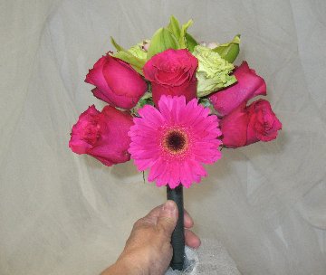 I generally use miniature gerberas for bouquet work, since their heads are about equal to a medium rose in size. Standard gerberas are very large, sometimes up to 4" or 5" across.