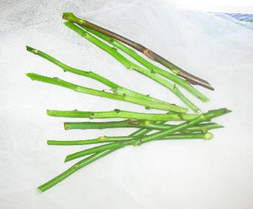 Press the cleaned and cut stems against the handle as shown below.