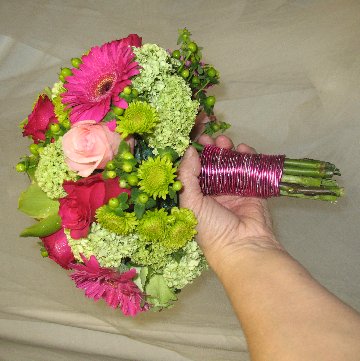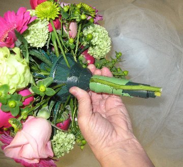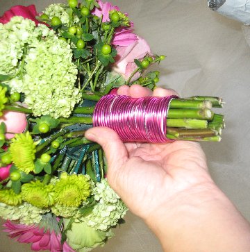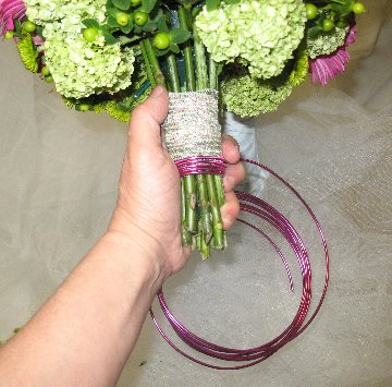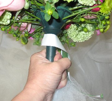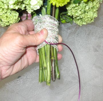 Now you can wrap with florist tape, ribbon or wire to cover where the bride's hand will be placed.