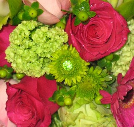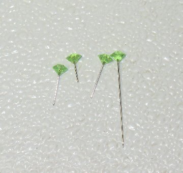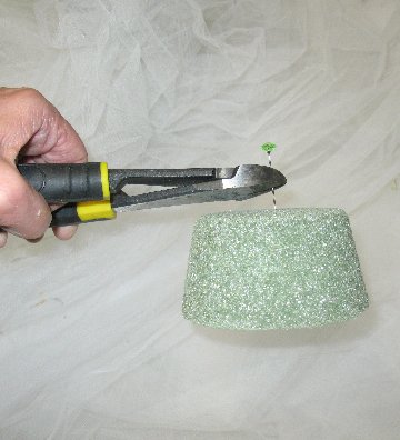 The shorter stems slide easily into the heads of the button mums to provide sparkle accents to the bouquet. They are available in red, pink, blue and clear. You can cut down pearl headed pins in the same manner.