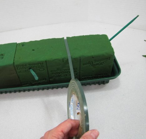 Wedding head table arrangements need to be stable so the weight of the flowers doesn't tip them forward and fall off the table. Another way florists keep florist foam in place is to use waterproof tape. The sides of the container needs to be dry.