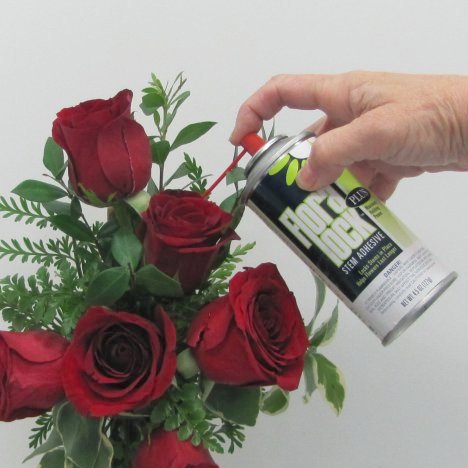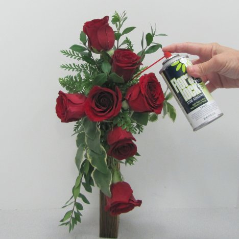 Look your final design over and be sure you are satisfied. After using Floralock, you will not be able to insert any more stems into the foam.